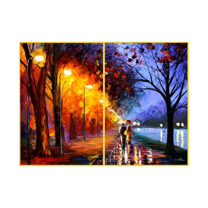 If you want to add new emotions and colors to your life, why don’t you start with your home? Hanging a cityscape like that on your wall will instantly make any room brighter, cozier and nicer! Indeed, what can be better than a super romantic date in the pouring rain, hand in hand under the same umbrella, with the entire park at your disposal? The incredible aura of this painting will give you a charge of good mood every day. The size of the canvas is only 80 inches x 60 inches, so it will easily fit even into a limited wall space. Invite romance into your life by decorating your home with this marvelous work of art!