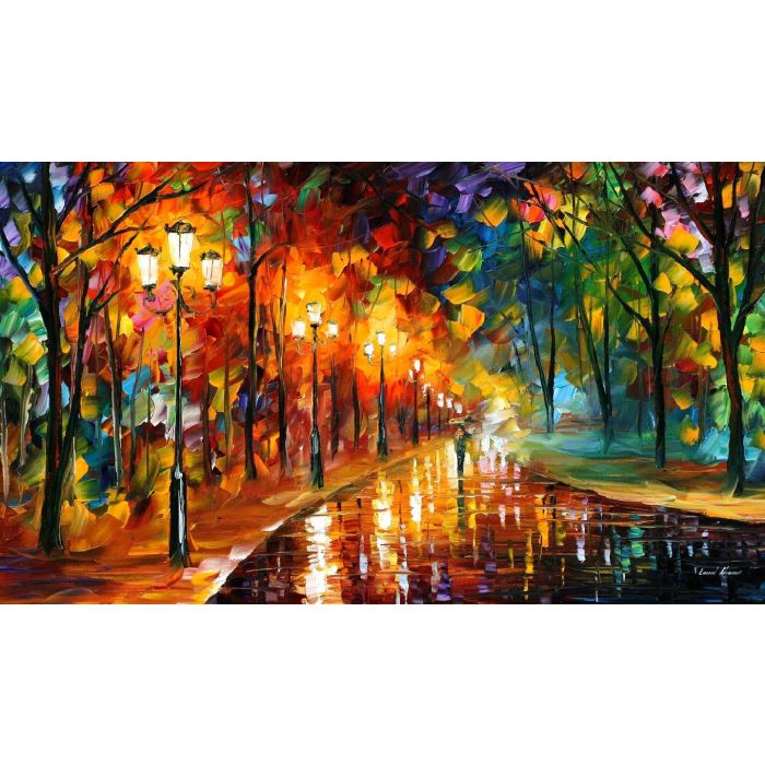 This piece was created with the same amount of soul and emotion just like the first original painting. This piece was created with oil paint on artistic canvas using unique Afremov technique of a palette knife. The artwork has texture, you can feel the strokes by touching the painting. By purchasing on this site, you are buying directly from Leonid Afremov®. We guarantee your satisfaction and the best customer experience.