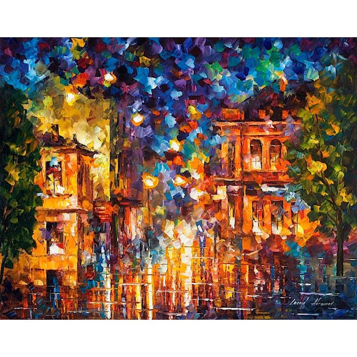 This is an original oil painting by Leonid Afremov. It is made with high-quality oil paint on top of a 100% linen canvas. An original oil painting is a direct result of the artist's creative process. This is a unique piece. Leonid Afremov has spent weeks making this painting using nothing more than his imagination and inspiration. This piece holds the real artistic soul of Leonid Afremov. The certificate of authenticity will include the name of the owner who purchased the piece of art. The certificate is signed by Leonid Afremov