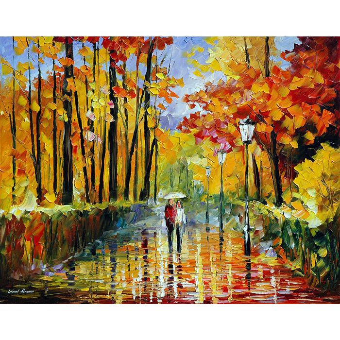 AUTUMN RAIN FRAMED - PALETTE KNIFE Oil Painting On Canvas By Leonid Afremov