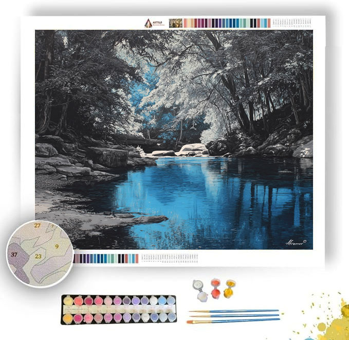 BLUE SHADOW RIVER B&W - Paint by Numbers Full Kit