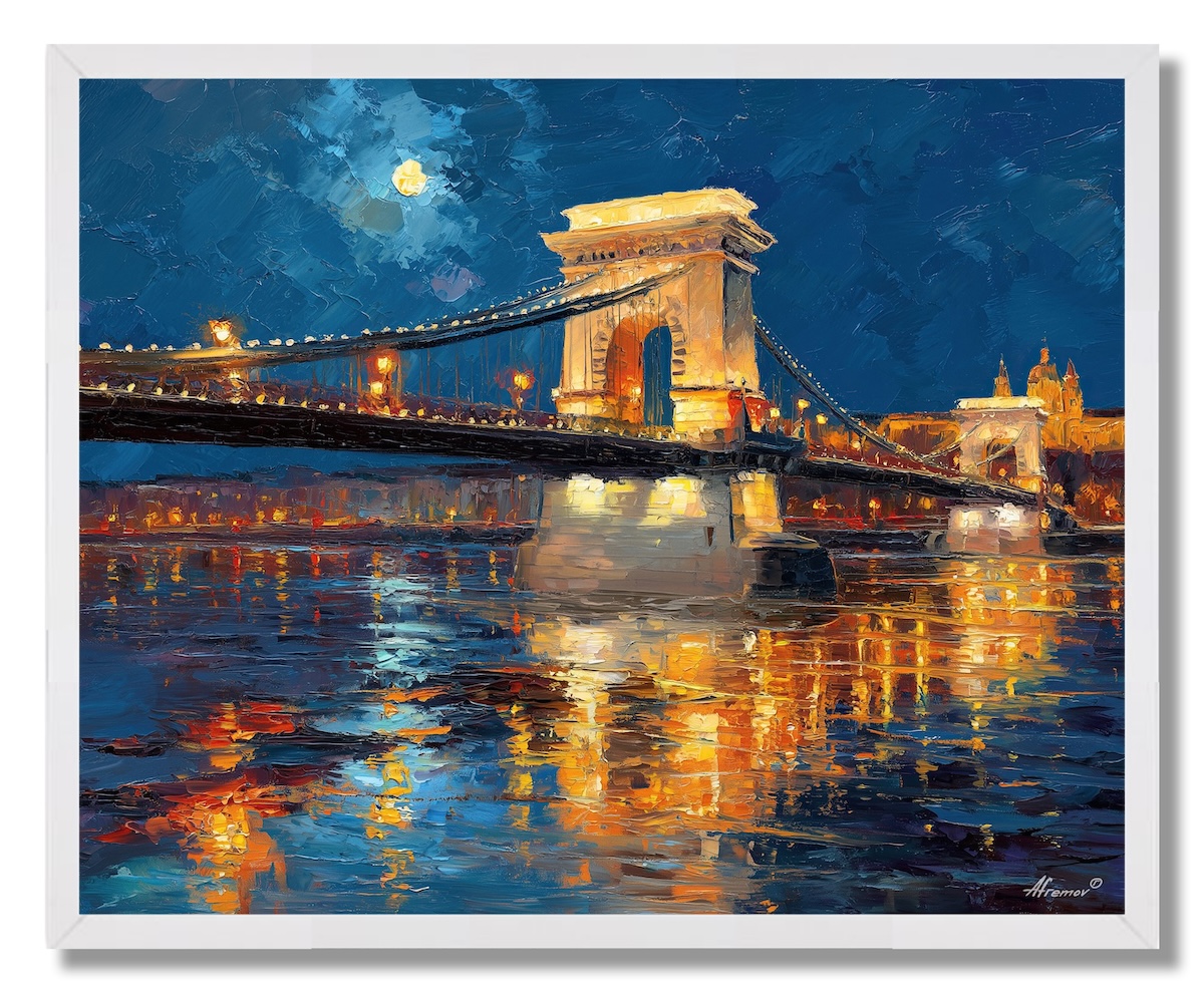 BUDAPEST CHAIN BRIDGE MOON RIVER - FRAMED