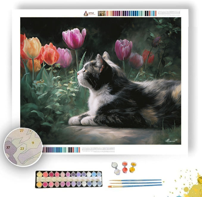 CAT AND TULIPS - Paint by Numbers Full Kit