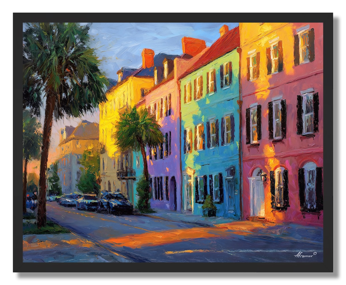 CHARLESTON RAINBOW ROW SUNRISE - FRAMED