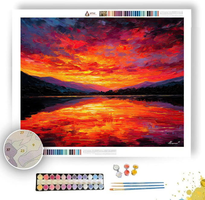CRIMSON LAKE REFLECTIONS - Paint by Numbers Full Kit