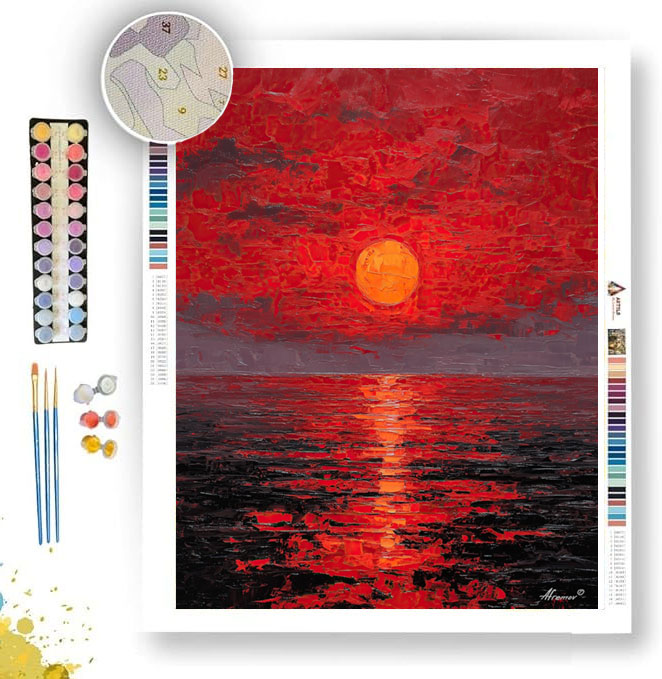 CRIMSON SUNSET B&W - Paint by Numbers Full Kit
