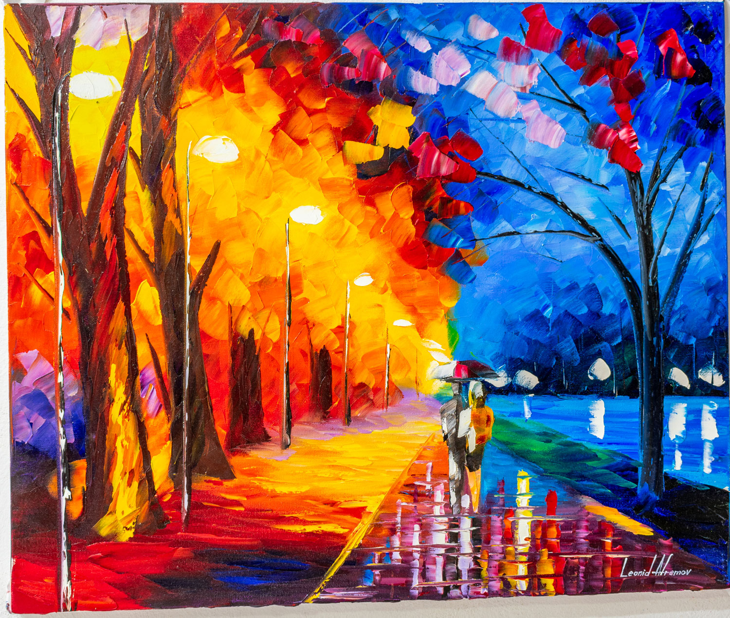 Limitierte Originalausgabe, zu 100% gemalt von Leonid Afremov. Nachdem das Meisterwerk verkauft wurde, hat Leonid einige Kopien selbst angefertigt.