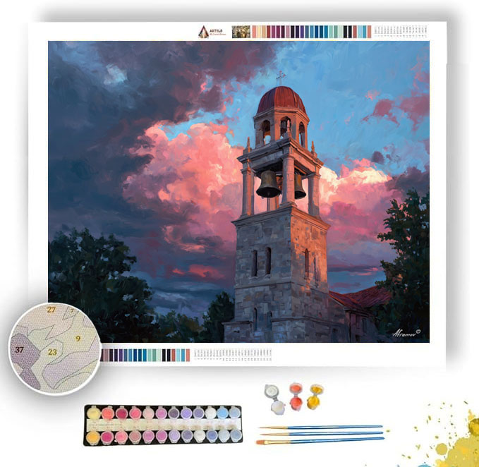 BELL TOWER AT SUNSET - Paint by Numbers Full Kit