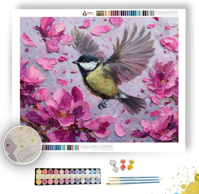 BIRD IN BLOSSOM WIND - Paint by Numbers Full Kit