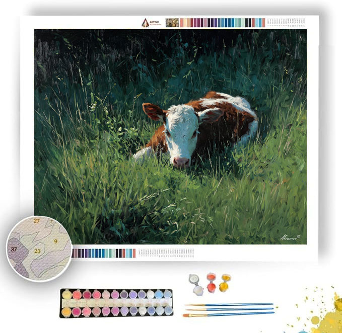 CALF GREEN PASTURE - Paint by Numbers Full Kit