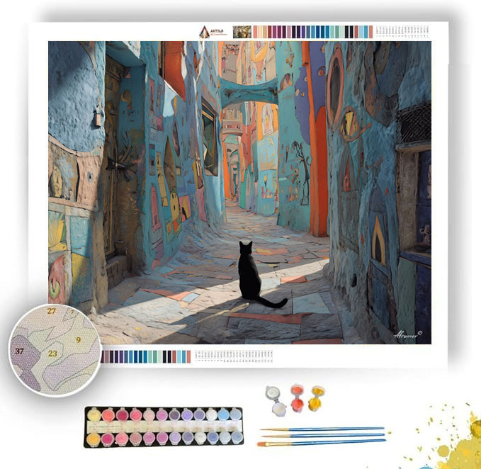 CAT ON DRAWN STREET - Paint by Numbers Full Kit