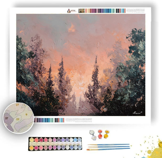 FOREST AT PEACH DAWN - Paint by Numbers Full Kit