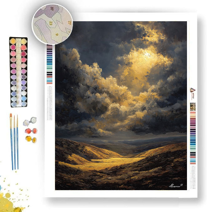 GOLD LIGHT OVER VALLEY B&W - Paint by Numbers Full Kit