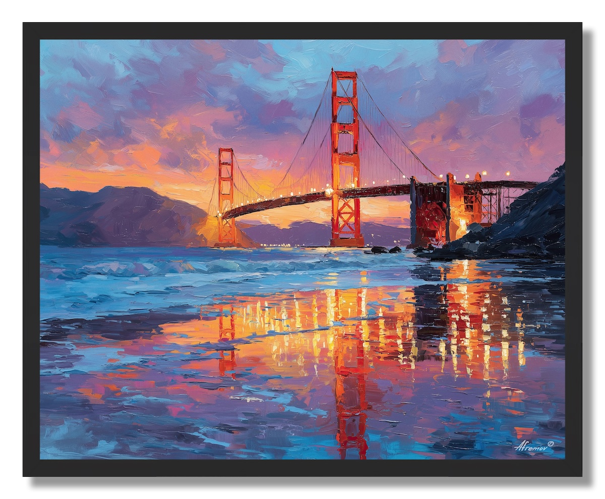 GOLDEN GATE SUNSET SHIMMER - FRAMED