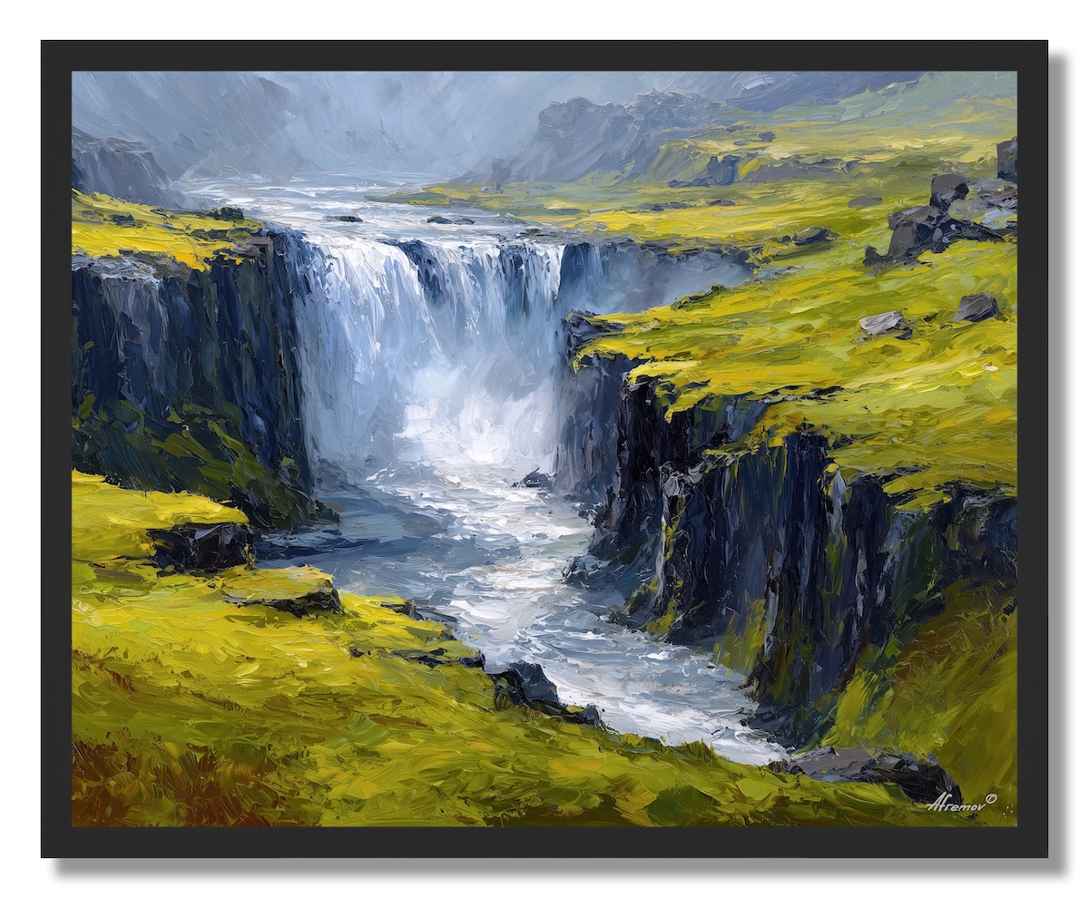 ICELAND GOLDEN FALLS AND MOSS - FRAMED