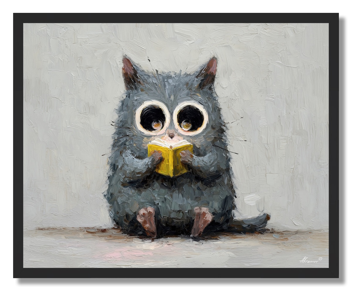 KAWAII CAT READING BOOK - FRAMED