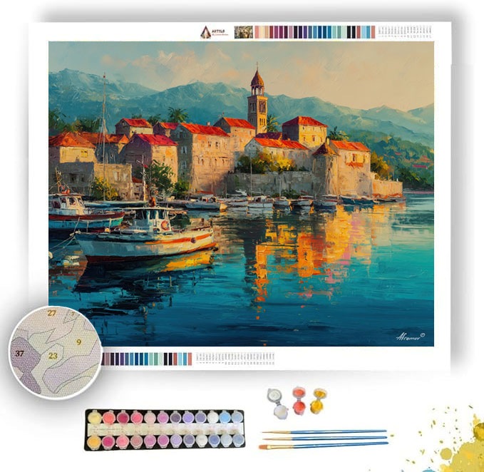 KORCULA HARBOR MORNING - Paint by Numbers Full Kit