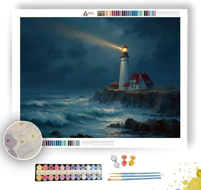 LIGHTHOUSE AT NIGHT - Paint by Numbers Full Kit
