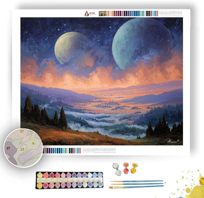 MOONFALL OVER LUMINOUS VALLEY - Paint by Numbers Full Kit