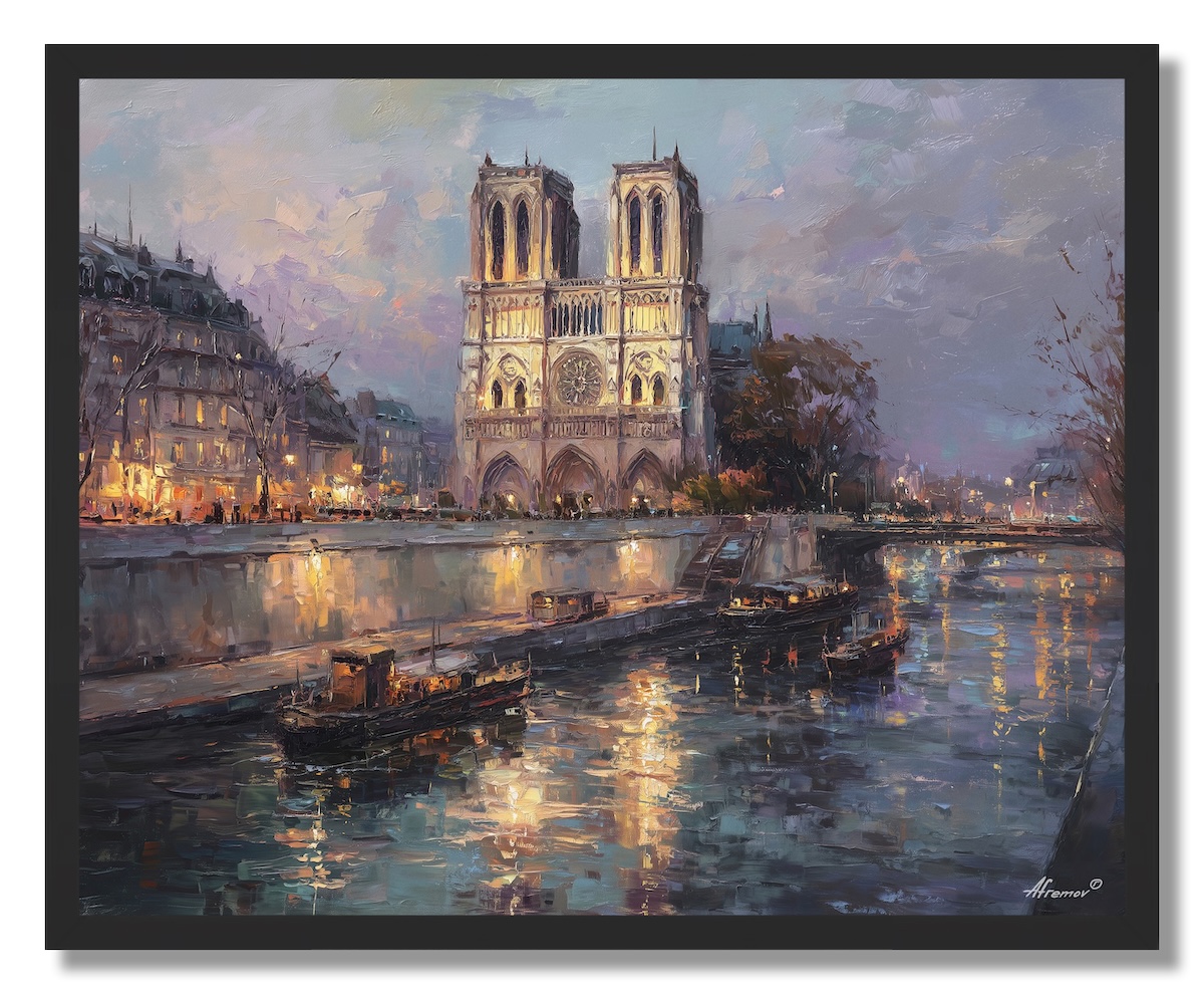 PARIS NOTRE DAME RIVERSIDE EVENING - FRAMED