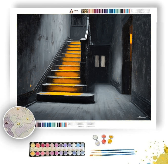 QUIET STAIRS WITH AMBER STEP B&W - Paint by Numbers Full Kit