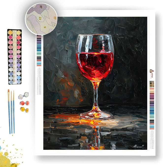 RED WINE GLASS B&W - Paint by Numbers Full Kit