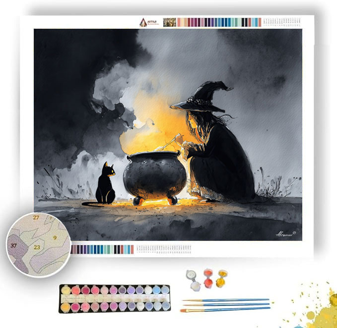WITCH AND HER CAT - Paint by Numbers Full Kit