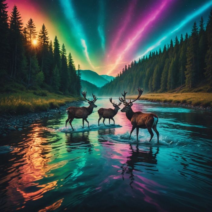 DEERS IN THE RIVER - stretched and ready to hang giclee on canvas