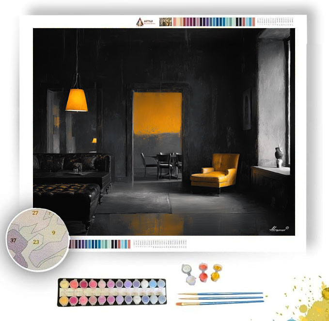ASHEN ROOM WITH SAFFRON B&W - Paint by Numbers Full Kit