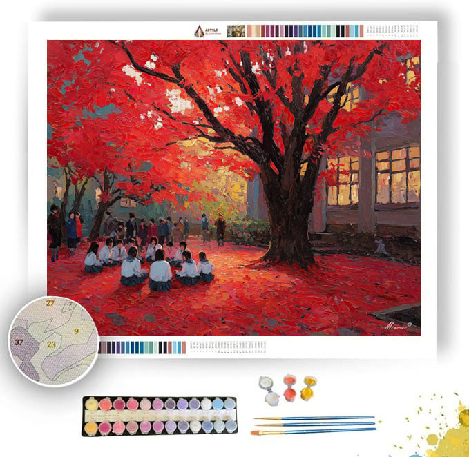 AUTUMN SCHOOLYARD - Paint by Numbers Full Kit
