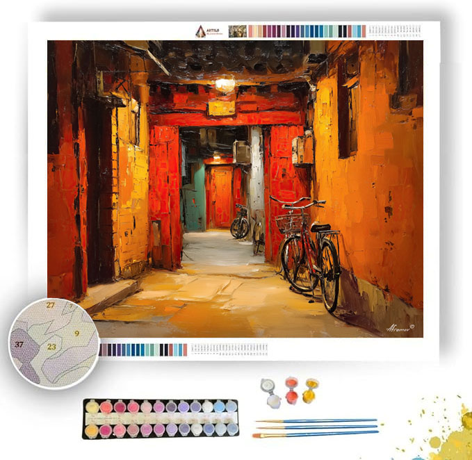 BEIJING HUTONG GOLDEN PATH - Paint by Numbers Full Kit