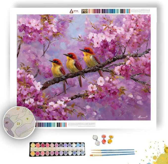 BIRDS IN BLOSSOM SKY - Paint by Numbers Full Kit