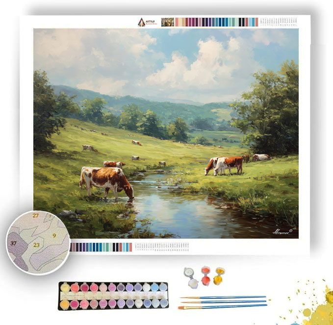 COWS BY THE STREAM - Paint by Numbers Full Kit