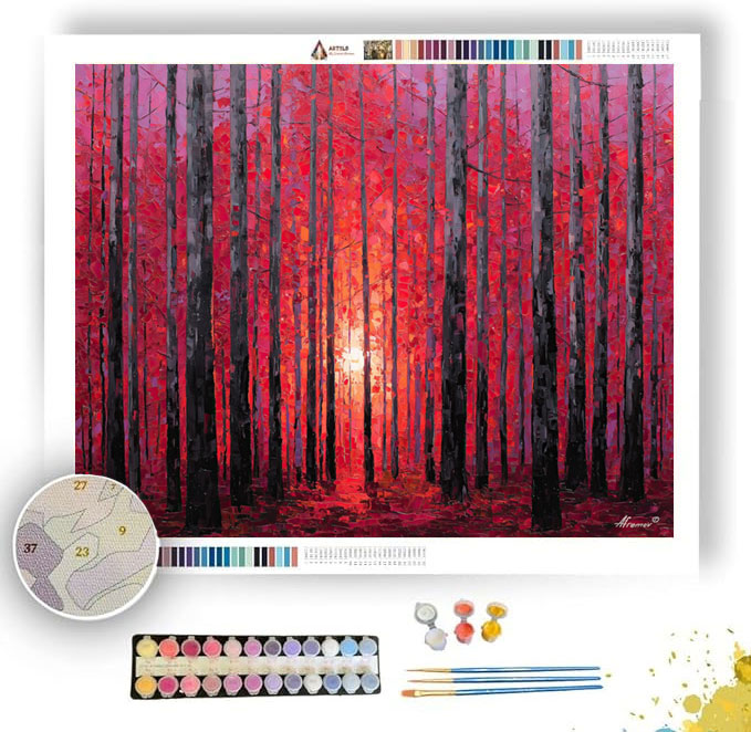 CRIMSON SUNLINE WOODS - Paint by Numbers Full Kit