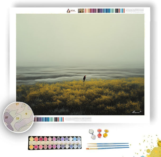 FOG FIELD WITH SAFFRON BIRD - Paint by Numbers Full Kit