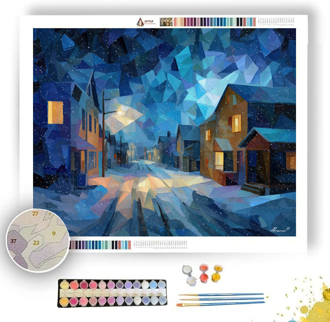 GEOMETRIC SNOWFALL NIGHT - Paint by Numbers Full Kit