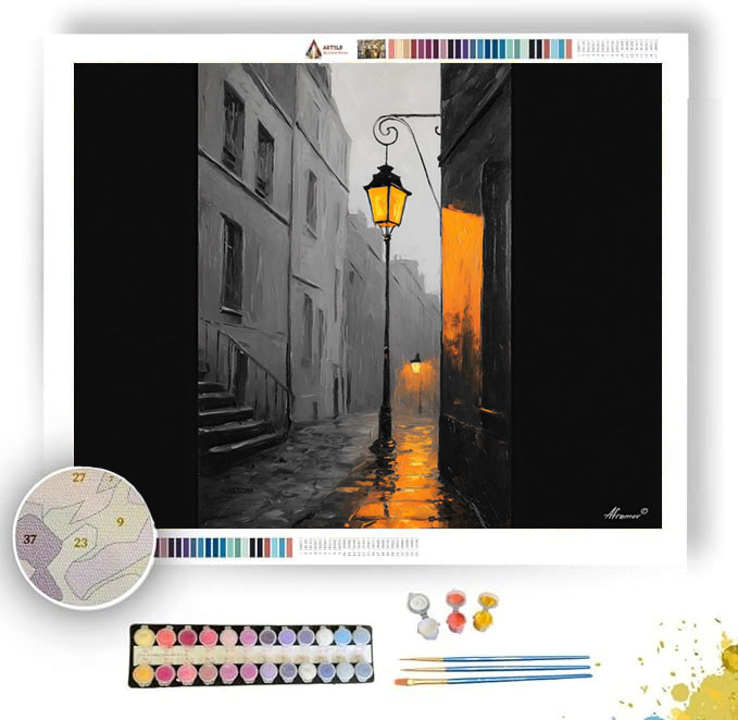 GOLDEN STREET LAMP B&W - Paint by Numbers Full Kit