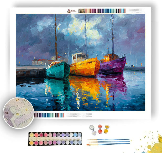 Whether pursued for personal artistic expression or given as a thoughtful gift, this kit invites individuals to bask in the radiant world of sunflowers, allowing them to infuse Afremov Gallery artist's creation with vivid colors and meticulous attention to detail, bringing the HARLEQUIN HARBOR BW to life in their own unique interpretation.