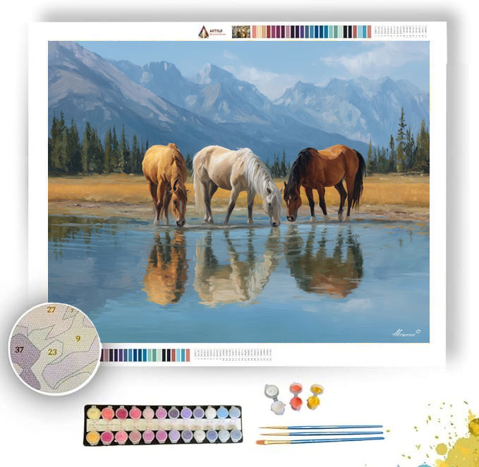 HORSES BY THE LAKE - Paint by Numbers Full Kit