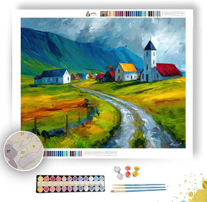 ICELANDIC VILLAGE ROAD - Paint by Numbers Full Kit