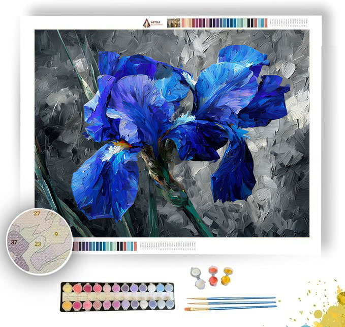 Whether pursued for personal artistic expression or given as a thoughtful gift, this kit invites individuals to bask in the radiant world of sunflowers, allowing them to infuse Afremov Gallery artist's creation with vivid colors and meticulous attention to detail, bringing the INDIGO IRIS to life in their own unique interpretation.