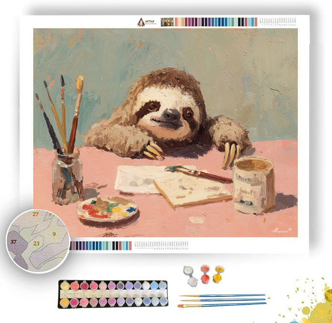 KAWAII SLOTH WORKING AT DESK - Paint by Numbers Full Kit
