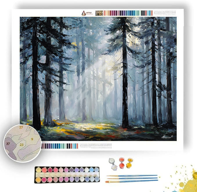 LIGHT THROUGH THE MISTY PINES - Paint by Numbers Full Kit