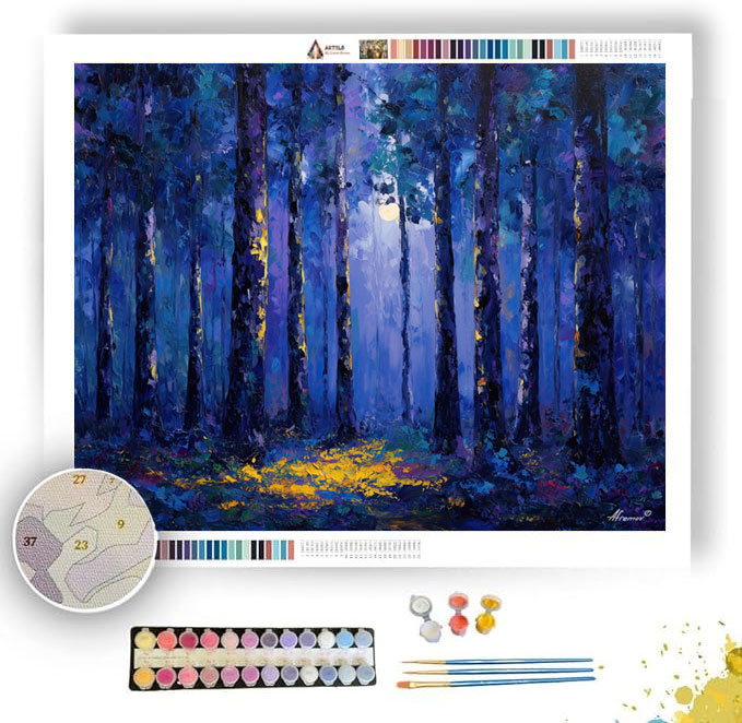 MIDNIGHT INDIGO FOREST - Paint by Numbers Full Kit