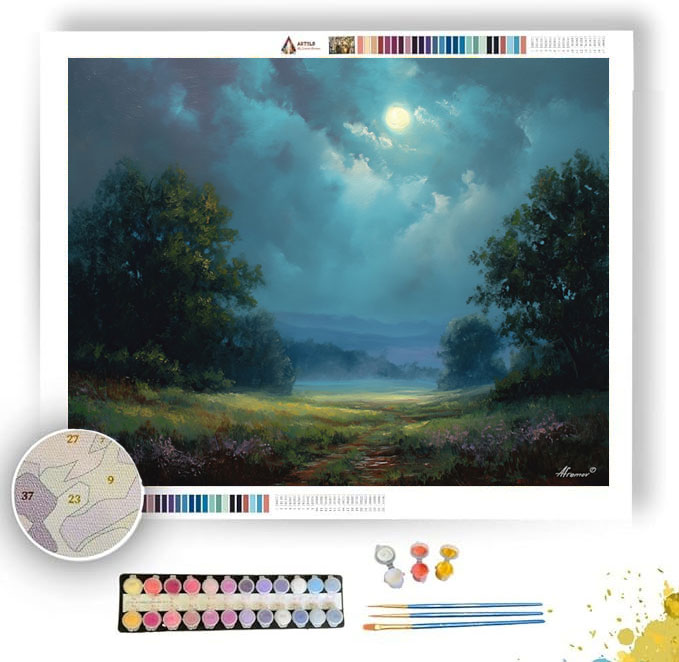 MOON ABOVE THE MEADOW - Paint by Numbers Full Kit