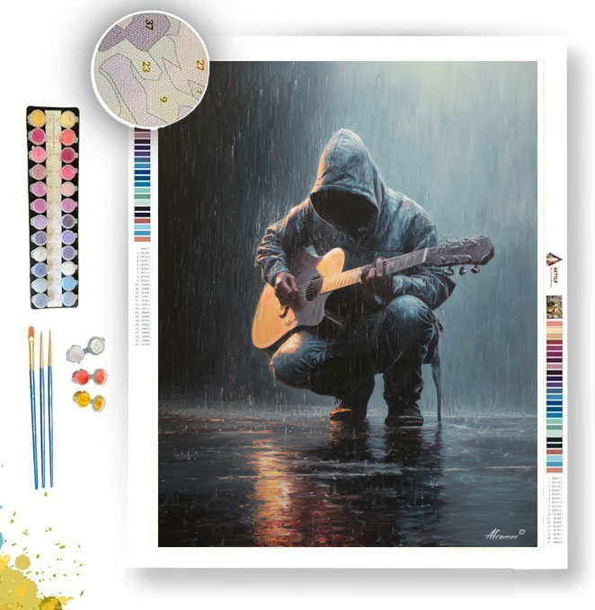 MUSICIAN UNDER RAIN - Paint by Numbers Full Kit