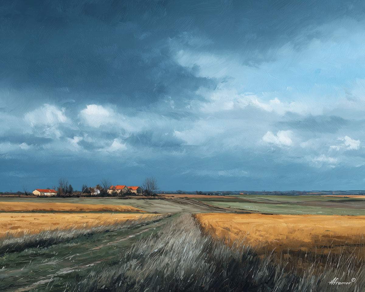 PALE SKY OVER RESTING FIELDS - Paint by Numbers Full Kit
