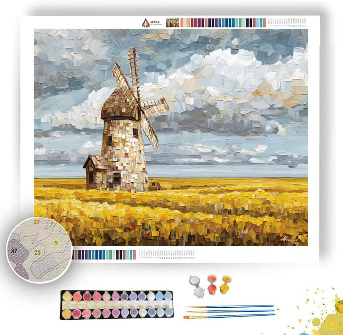 PIXEL WINDMILL FIELDS - Paint by Numbers Full Kit