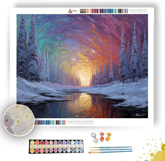 Whether pursued for personal artistic expression or given as a thoughtful gift, this kit invites individuals to bask in the radiant world of sunflowers, allowing them to infuse Afremov Gallery artist's creation with vivid colors and meticulous attention to detail, bringing the WINTERS BREATH to life in their own unique interpretation.