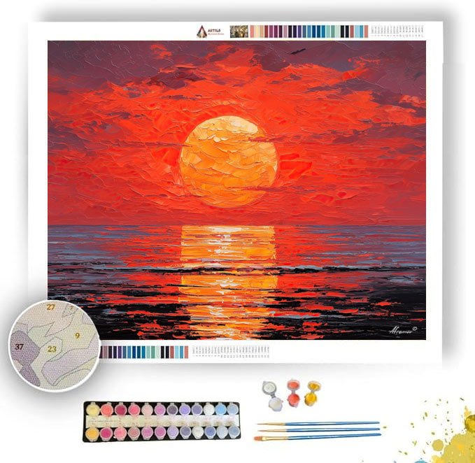 RED SUN OVER SEA - Paint by Numbers Full Kit